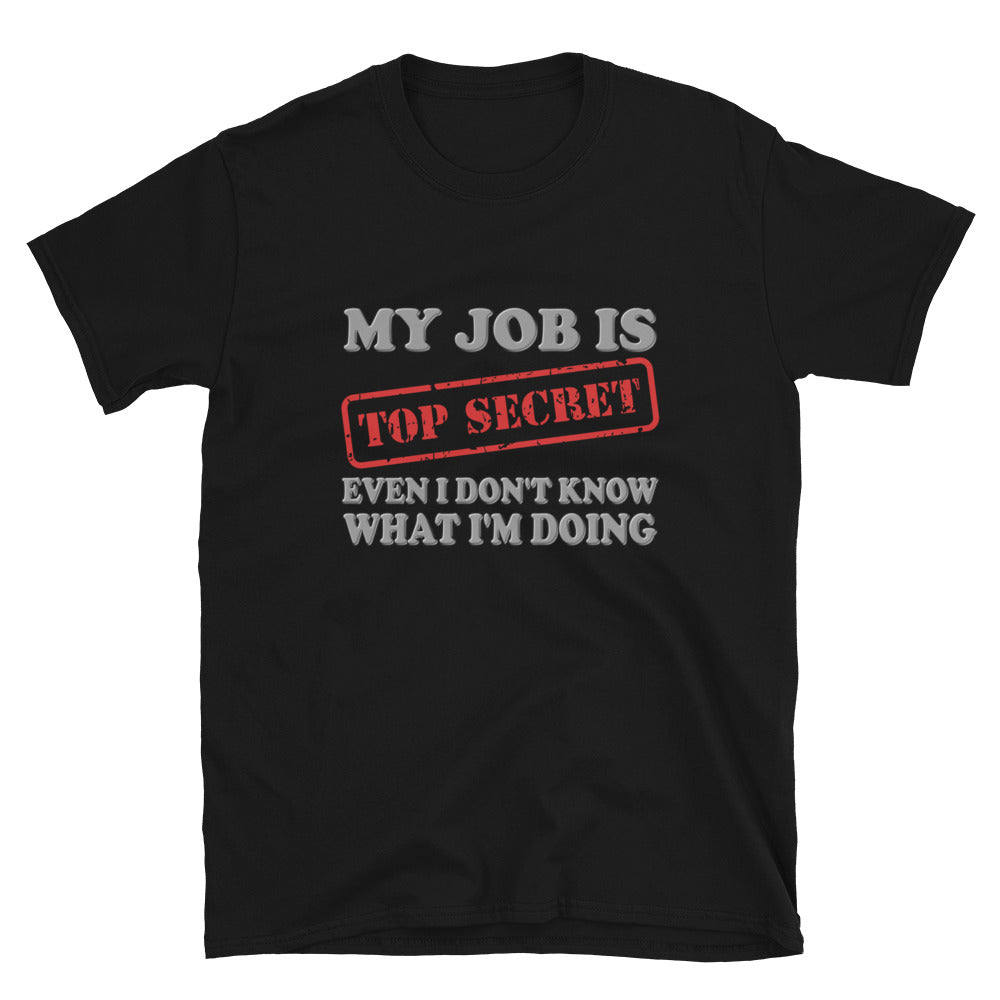 My Job Is Top Secret Shirt, Even I Don't Know What I'm Doing Shirt, Funny t-shirt Quote, Fun Pun Gift Idea Short-Sleeve Unisex T-Shirt.